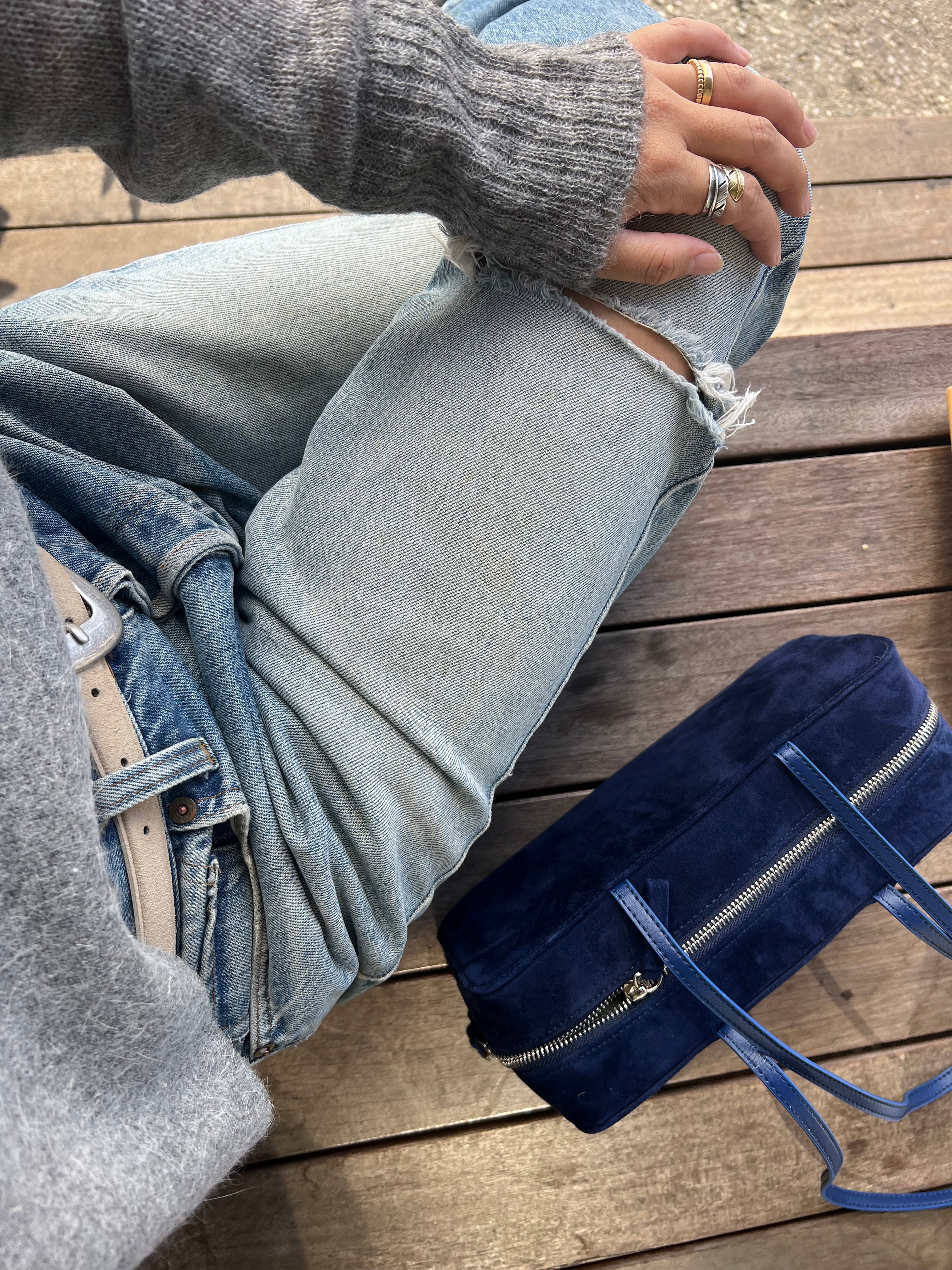 シンプルなフォルムにメタルファスナーが映え、洗練された大人のスタイルを演出。