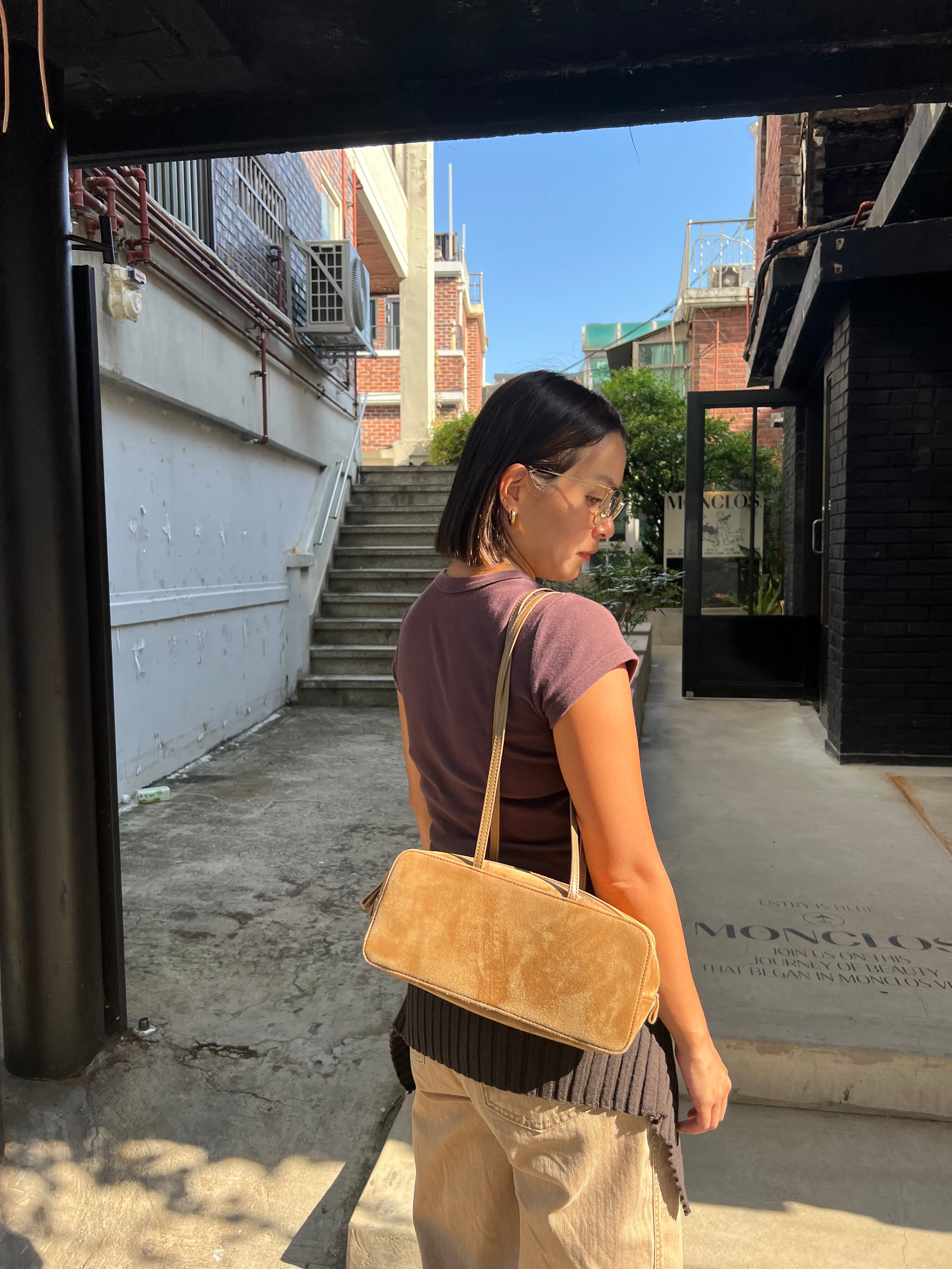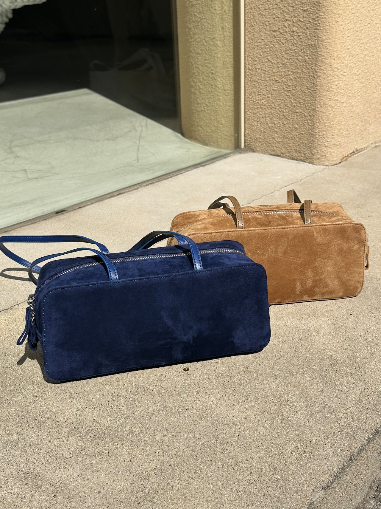 上質な牛革を贅沢に使用した、横長スクエア型のハンドバッグ。