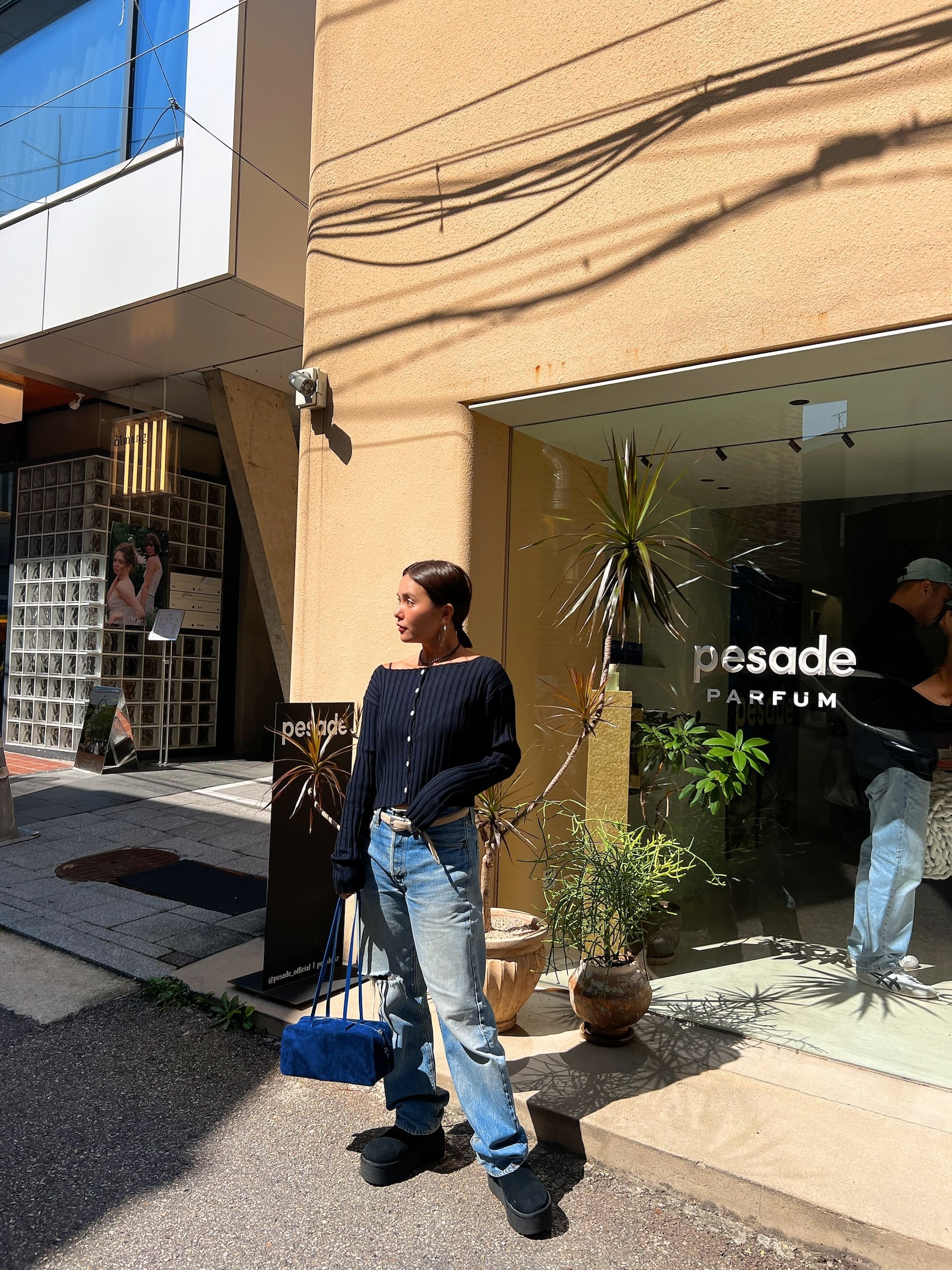 程よくフィットするシルエットとフロントボタンが、シンプルながらも洗練された印象を与えます。