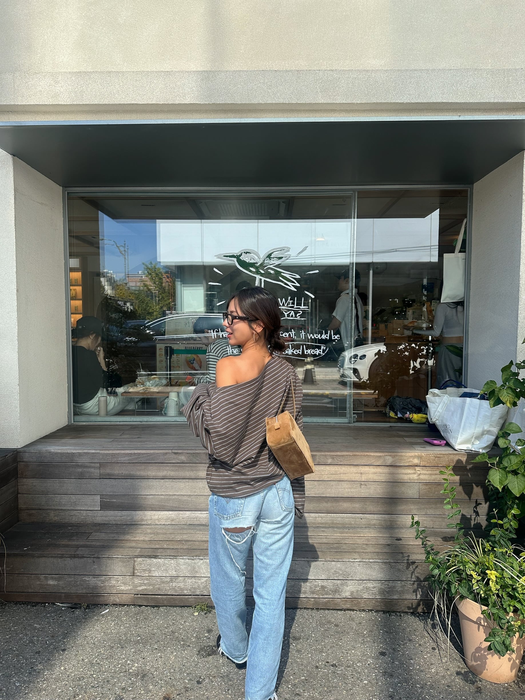 デイリーからカフェシーンまで、ナチュラルな抜け感を演出してくれる一枚です。
