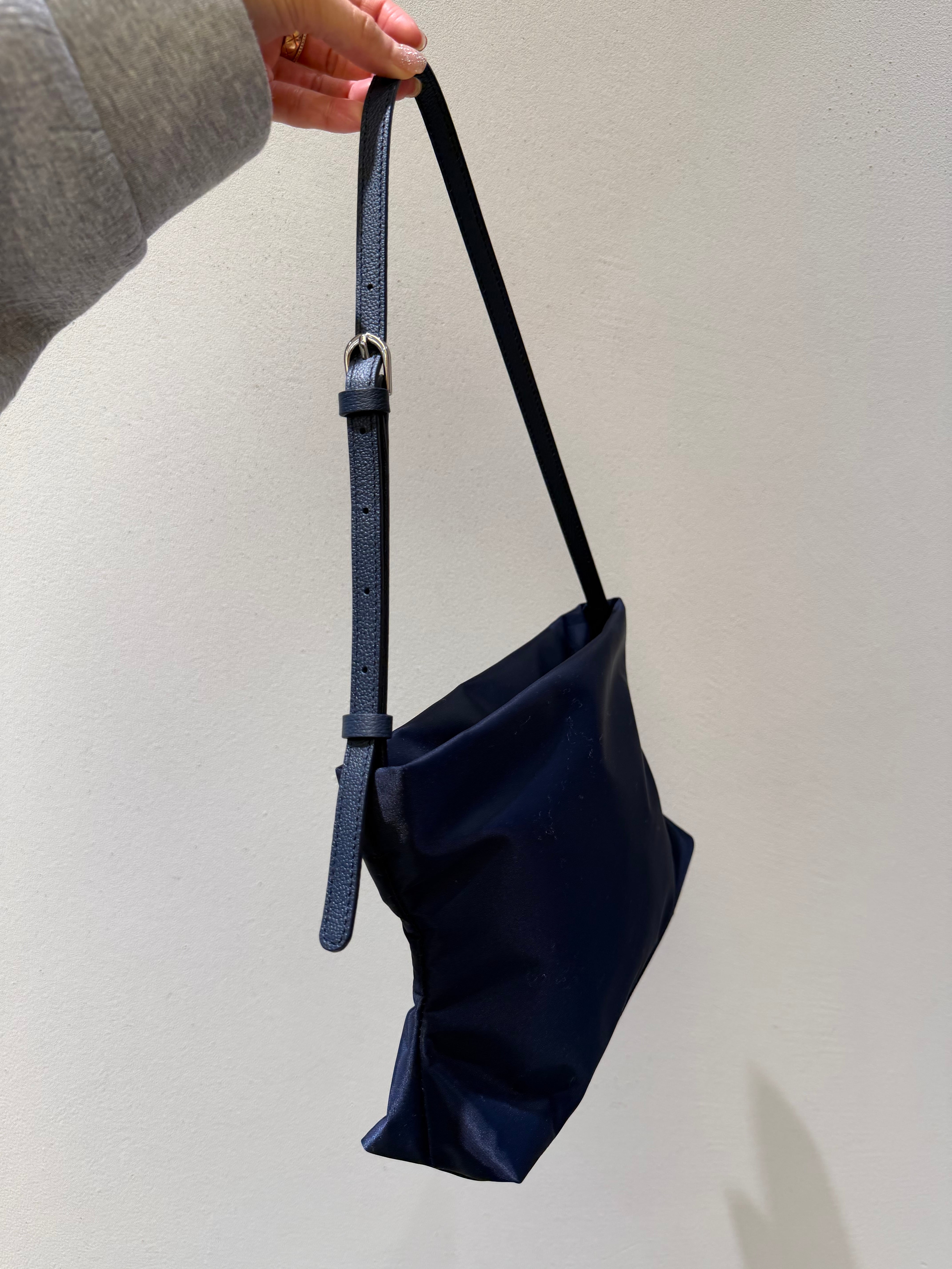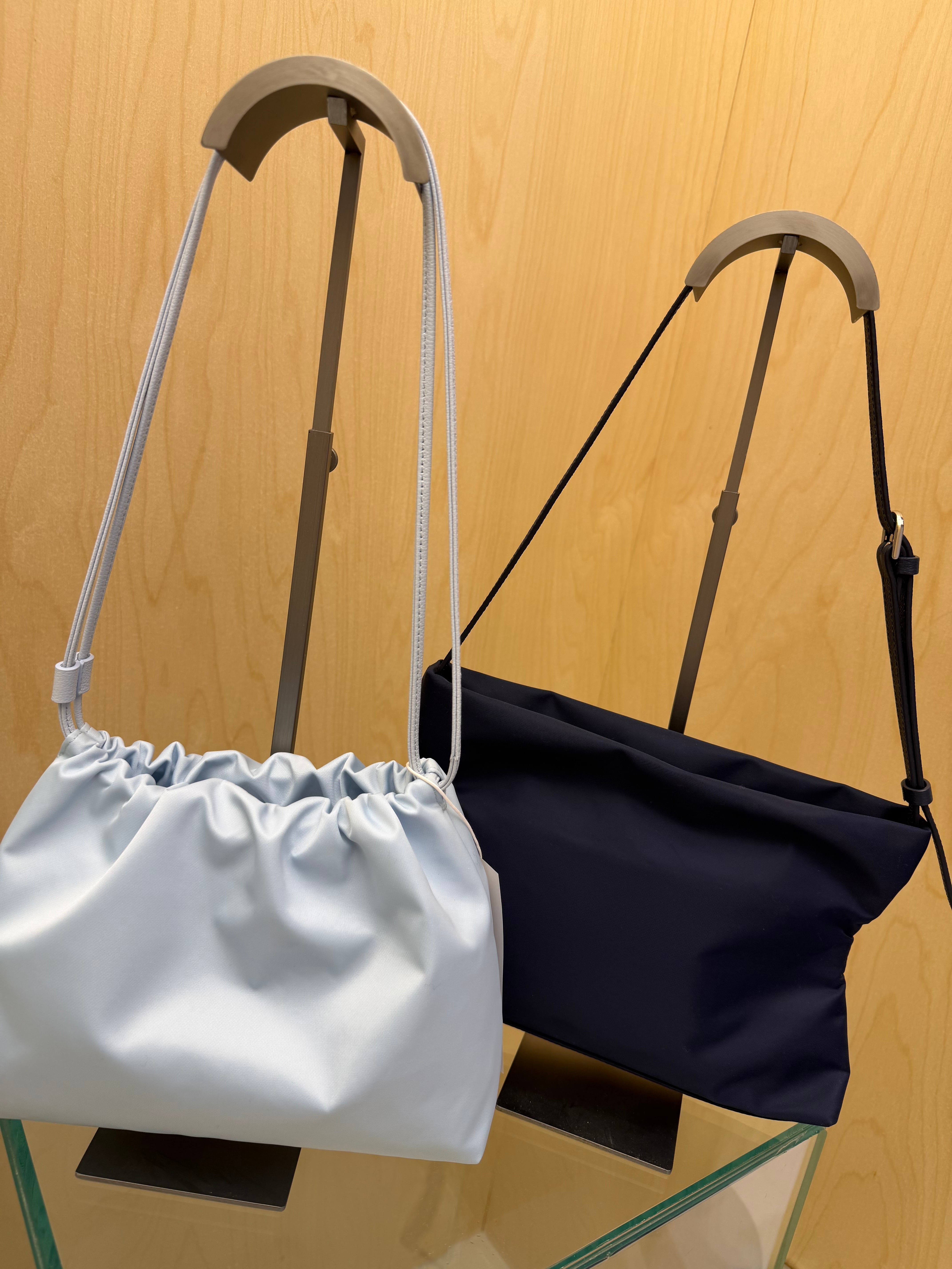 上品な光沢感が魅力のナイロン素材を使用した、洗練されたショルダーバッグ。