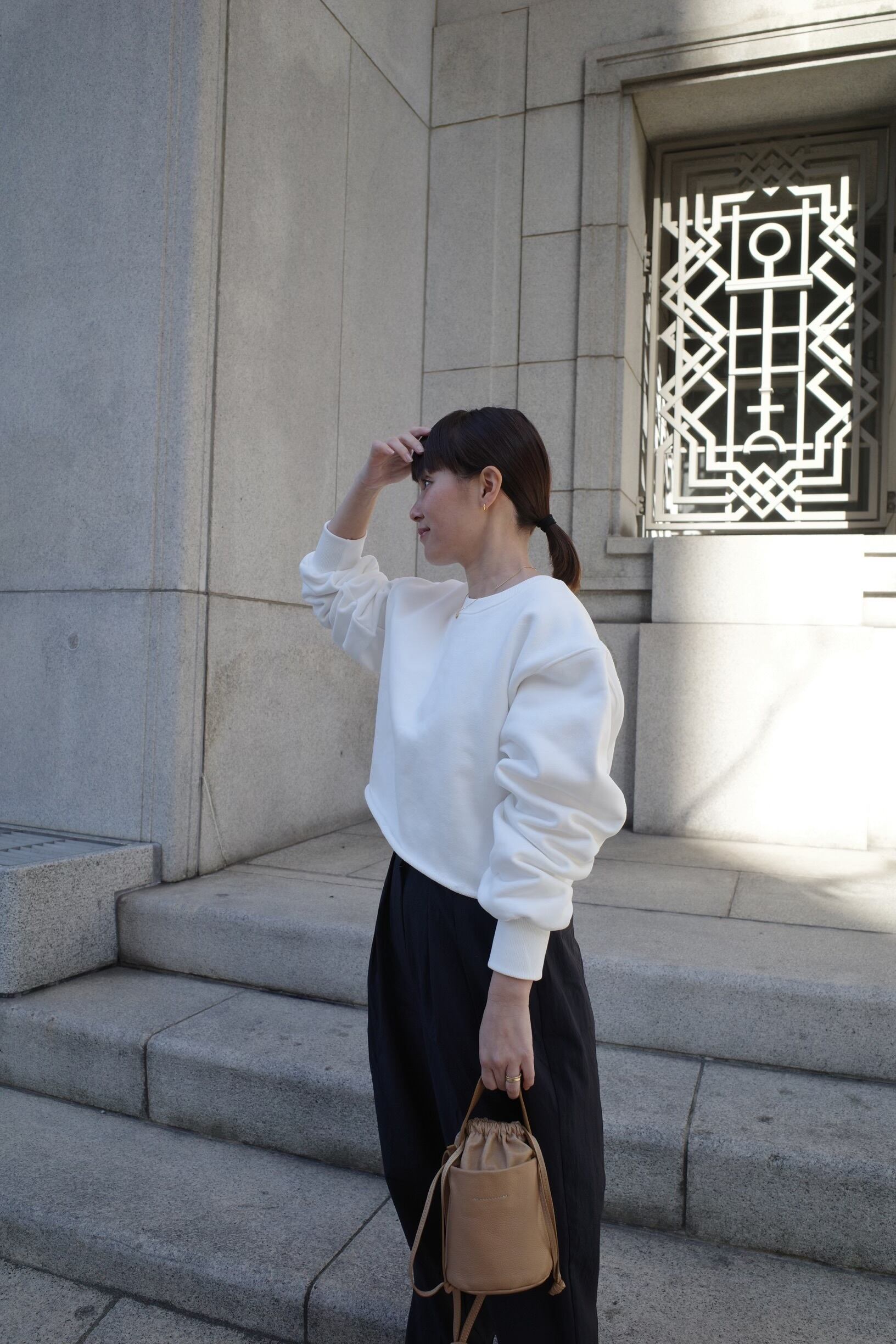 このスウェットは、シンプルなデザインながらもこだわりのポイントがたくさん。しっかりとした縫製や肉厚のある素材で、長く愛用できます。
