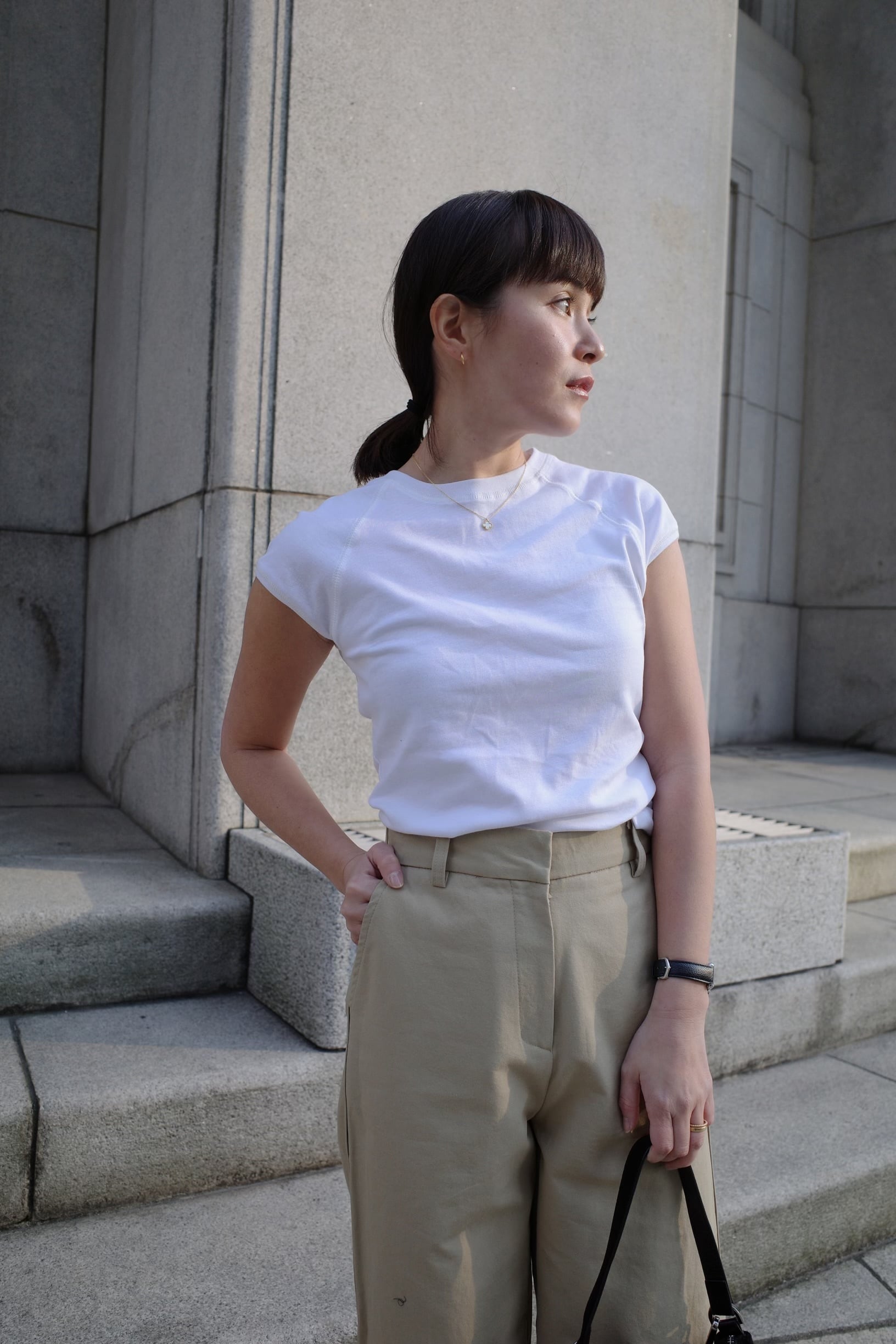 Compact T shirts whiteは、シンプルで使いやすい白Tシャツです。