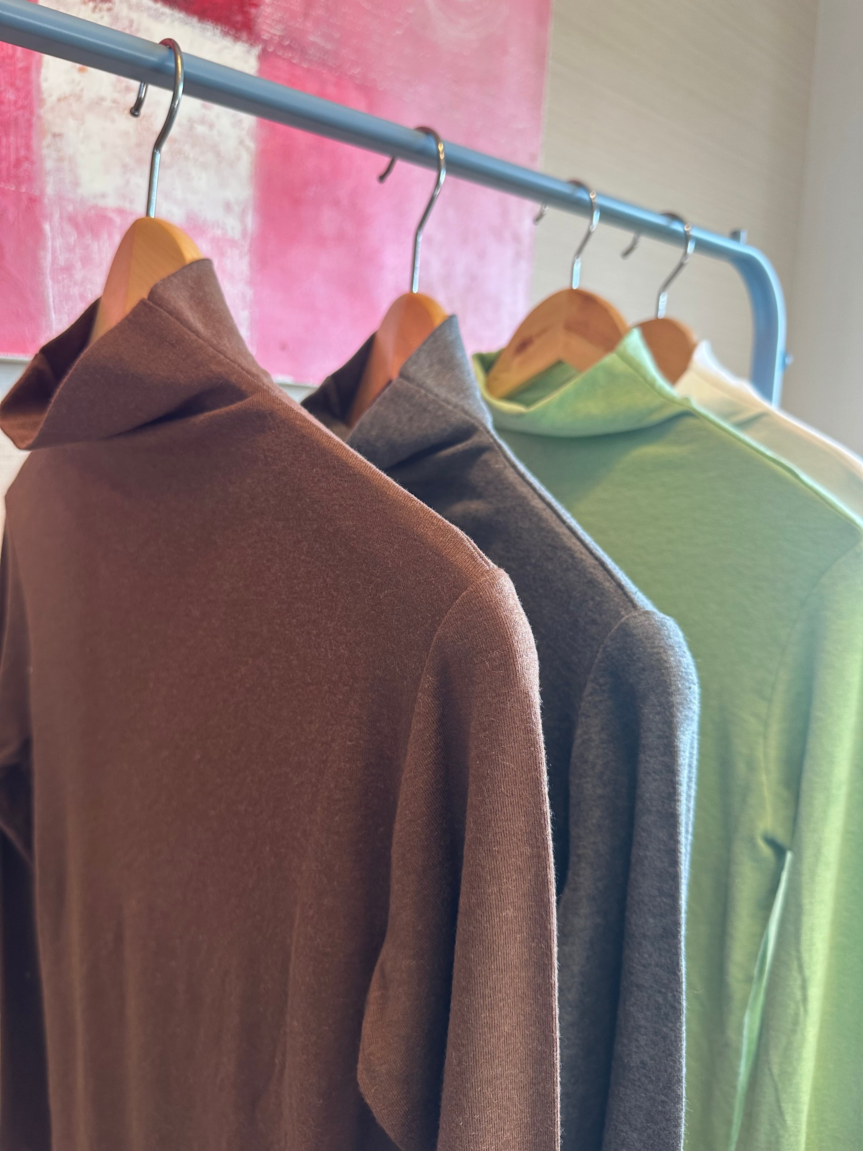 こちらのBASICなタートルネックは、肌触り、首回りの緩さ、高さ共に、とっても着心地が良く、1枚あればこれからの季節のコーデに困らないアイテムです。